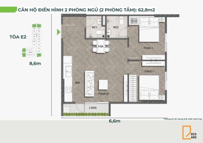 - Diện tích căn hộ: 42 – 68,8 m2